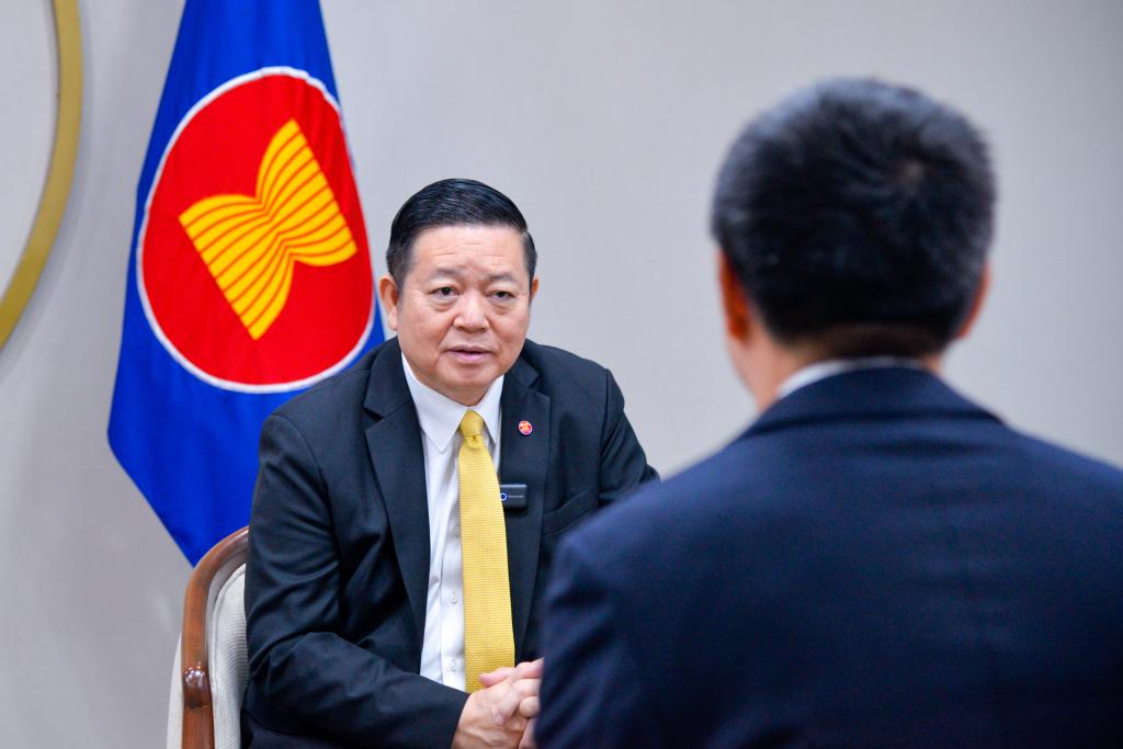 ASEAN Secretary-General Kao Kim Hourn gives an interview to Xinhua in Jakarta, Indonesia, March 25, 2025. [Photo/Xinhua]