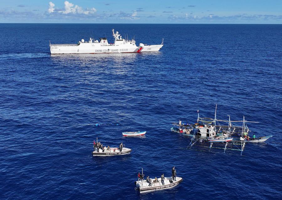 The China Coast Guard assists injured Filipino fishermen in waters adjacent to China's Huangyan Dao, June 29, 2024. [Photo/Xinhua]