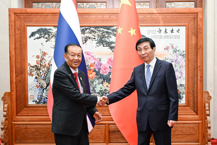 China's top political advisor Wang Huning met with Thailand's National Assembly President and Speaker of the House of Representatives Wan Muhamad Noor Matha in Beijing on Sunday.