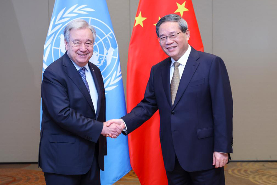 China stands ready to deepen coordination and cooperation with the United Nations to jointly advocate for a more just and equitable international order, Chinese Premier Li Qiang said here on Tuesday.