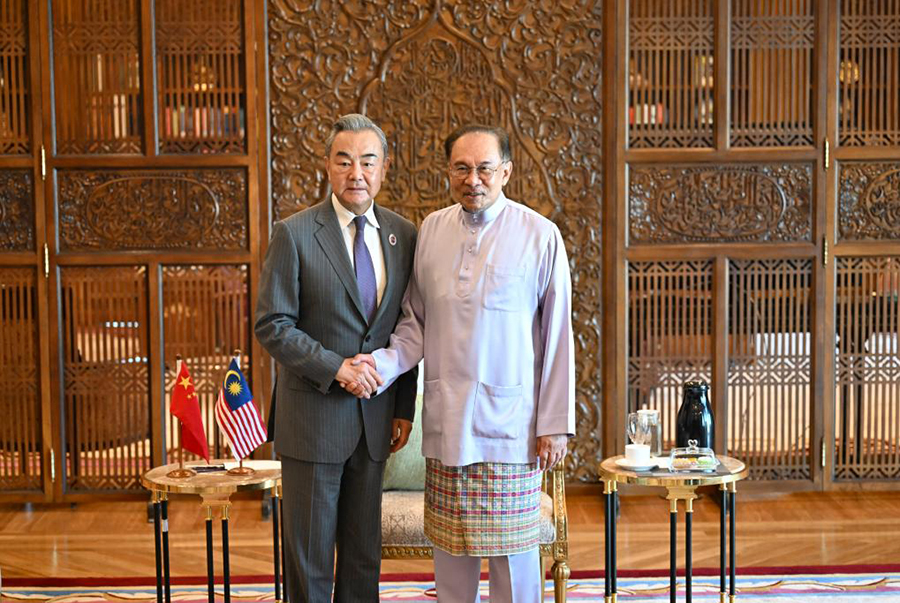 China stands ready to work with Malaysia to implement the consensus reached by the leaders of the two countries on building a high-level strategic China-Malaysia community with a shared future, Chinese Foreign Minister Wang Yi said here on Thursday.