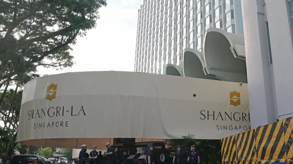 People in uniforms perform security duties outside the Shangri-La Hotel, the venue for the 22nd Shangri-La Dialogue, Singapore, May 30, 2025. [Photo/Xinhua]