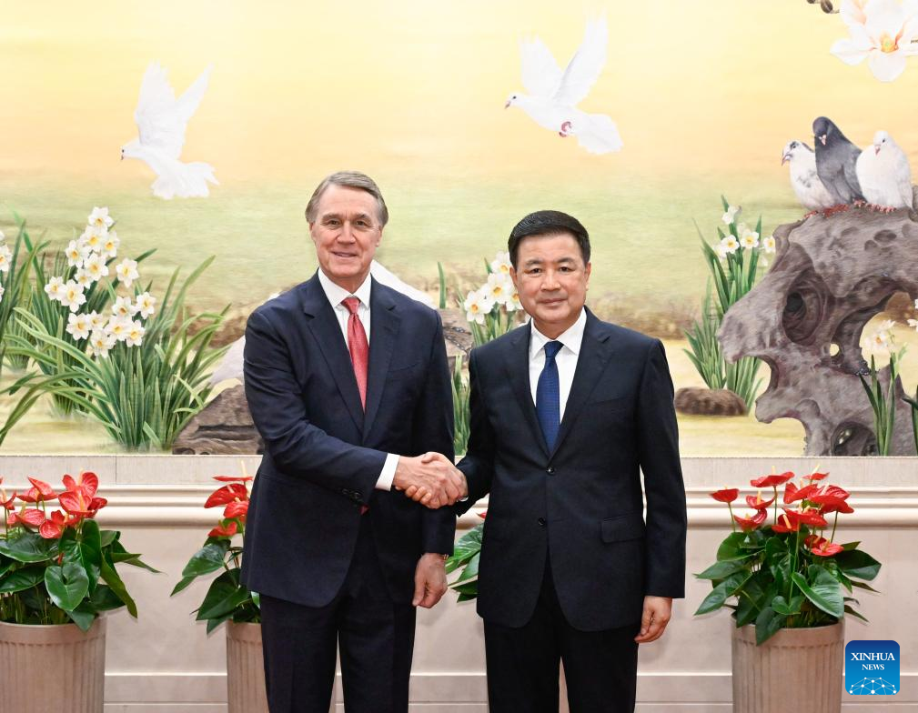 Chinese State Councilor and Minister of Public Security Wang Xiaohong meets with David Perdue, ambassador of the United States to China, in Beijing, capital of China, June 19, 2025. [Photo by Shen Hong/Xinhua]
