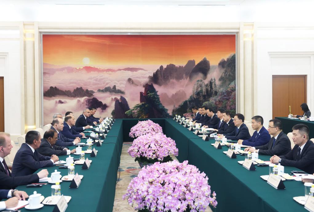 Chinese Vice President Han Zheng meets with heads of foreign delegations attending the 20th meeting of the Security Council Secretaries of the Shanghai Cooperation Organization (SCO) Member States in Beijing, capital of China, June 24, 2025. [Photo by Liu Weibing/Xinhua]