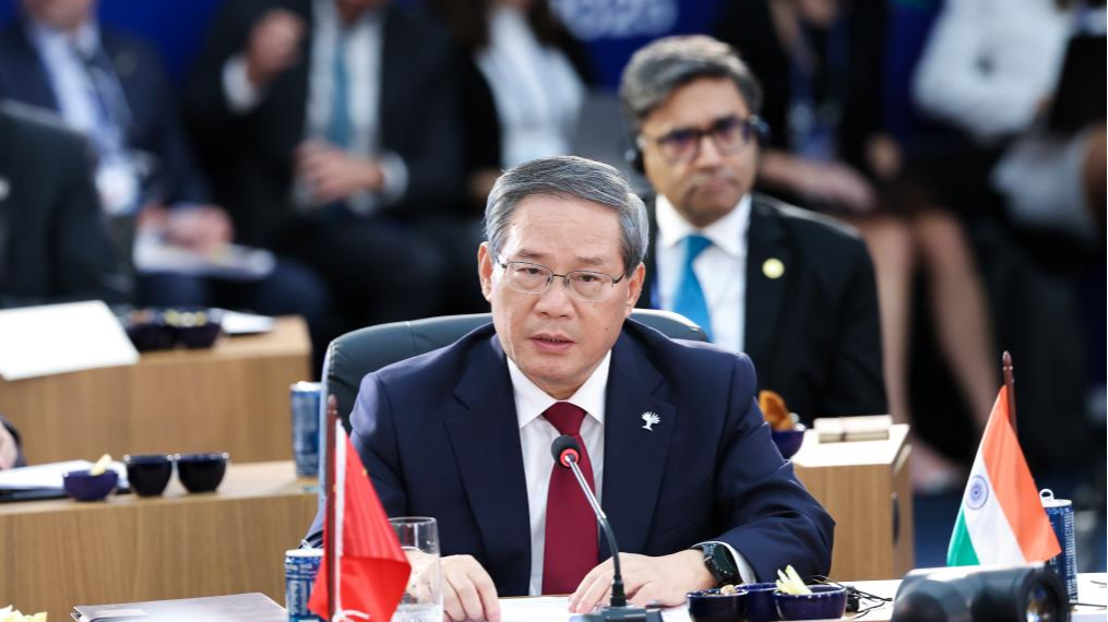 Chinese Premier Li Qiang addresses the plenary session of "Peace and Security and Reform of Global Governance" of the 17th BRICS Summit in Rio de Janeiro, Brazil, July 6, 2025. [Photo/Xinhua]