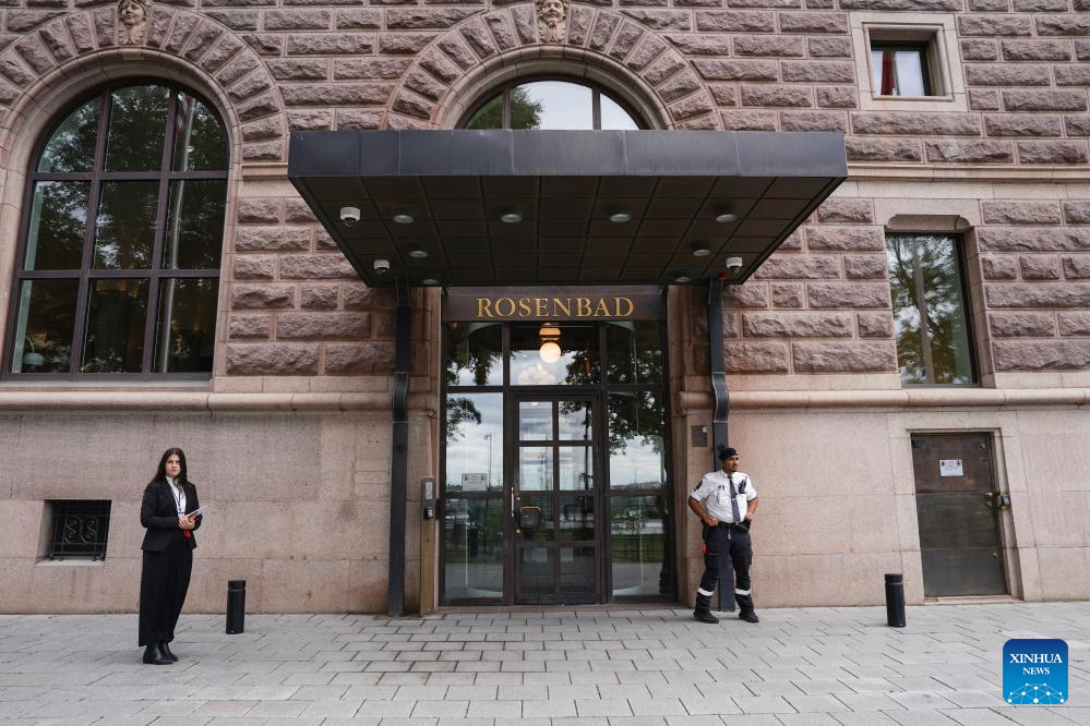 This photo taken on July 28, 2025 shows the Rosenbad building in Stockholm, Sweden. The Chinese and U.S. delegations convened here on Monday for a new round of economic and trade talks. [Photo by Dai Tianfang/Xinhua]