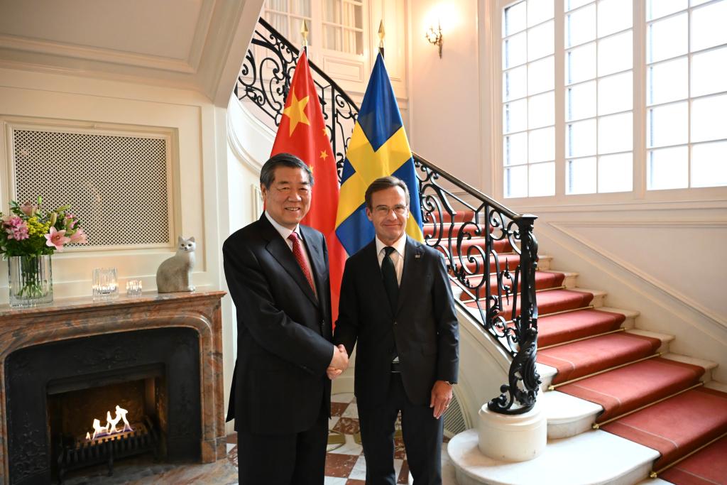 He first conveyed greetings from the Chinese leadership to Kristersson. He noted that this year marks the 75th anniversary of the establishment of diplomatic relations between China and Sweden, and that Chinese President Xi Jinping and Swedish King Carl XVI Gustaf exchanged congratulatory messages to mark the occasion in May.