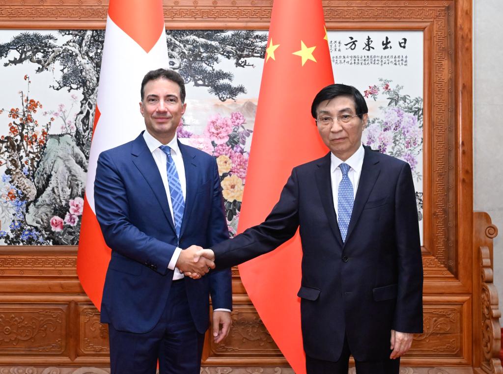 Wang, chairman of the National Committee of the Chinese People's Political Consultative Conference (CPPCC), noted that since the establishment of diplomatic relations between China and Switzerland 75 years ago, the two countries have always adhered to equality, mutual respect and mutual success.
