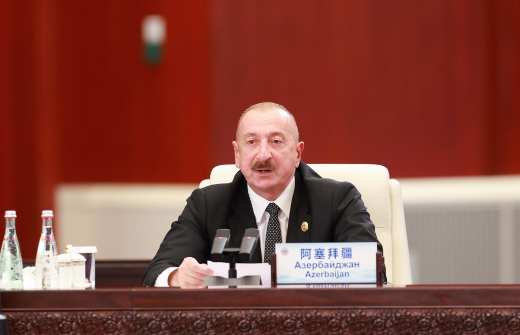 Azerbaijani President Ilham Aliyev attends the "Shanghai Cooperation Organization (SCO) Plus" Meeting in Tianjin, north China, Sept. 1, 2025. The Shanghai Cooperation Organization (SCO) convened the "SCO Plus" Meeting on Monday afternoon in north China's port city of Tianjin. [Photo by Ding Haitao/Xinhua]
