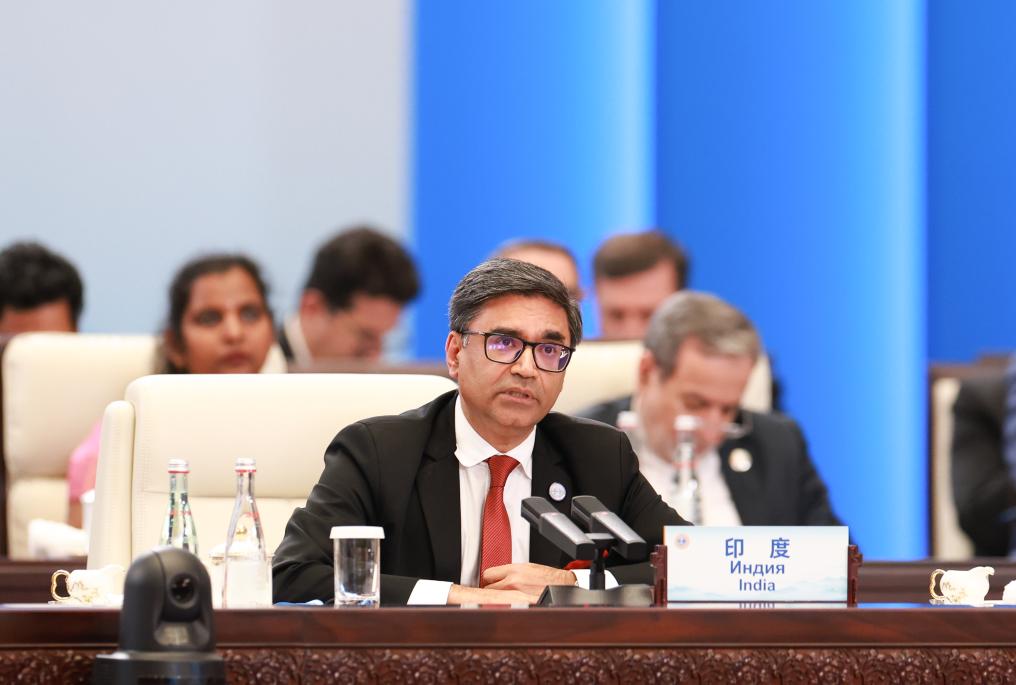 A representative of India attends the "Shanghai Cooperation Organization (SCO) Plus" Meeting in Tianjin, north China, Sept. 1, 2025. The Shanghai Cooperation Organization (SCO) convened the "SCO Plus" Meeting on Monday afternoon in north China's port city of Tianjin. [Photo by Ding Haitao/Xinhua]