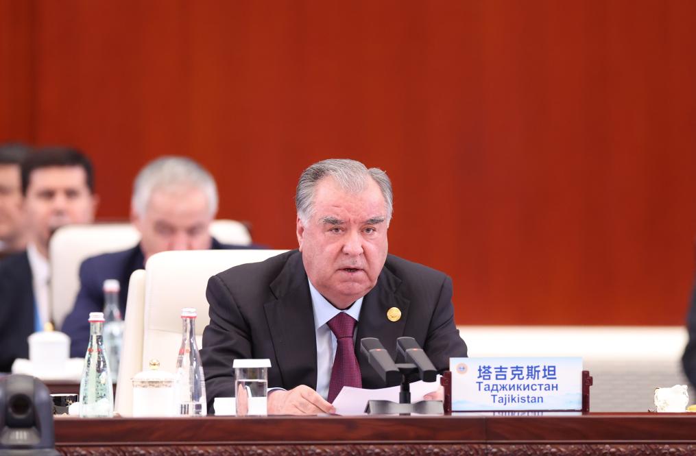 Tajik President Emomali Rahmon attends the "Shanghai Cooperation Organization (SCO) Plus" Meeting in Tianjin, north China, Sept. 1, 2025. The Shanghai Cooperation Organization (SCO) convened the "SCO Plus" Meeting on Monday afternoon in north China's port city of Tianjin. [Photo by Huang Jingwen/Xinhua]
