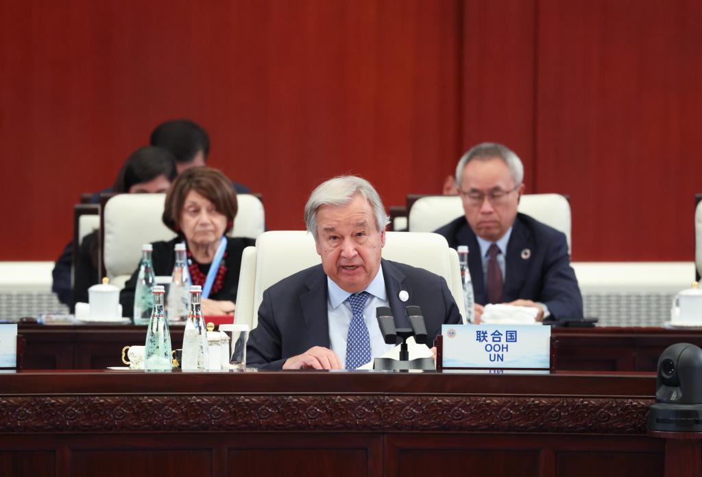 UN Secretary-General Antonio Guterres attends the "Shanghai Cooperation Organization (SCO) Plus" Meeting in Tianjin, north China, Sept. 1, 2025. The Shanghai Cooperation Organization (SCO) convened the "SCO Plus" Meeting on Monday afternoon in north China's port city of Tianjin. [Photo by Ding Haitao/Xinhua]