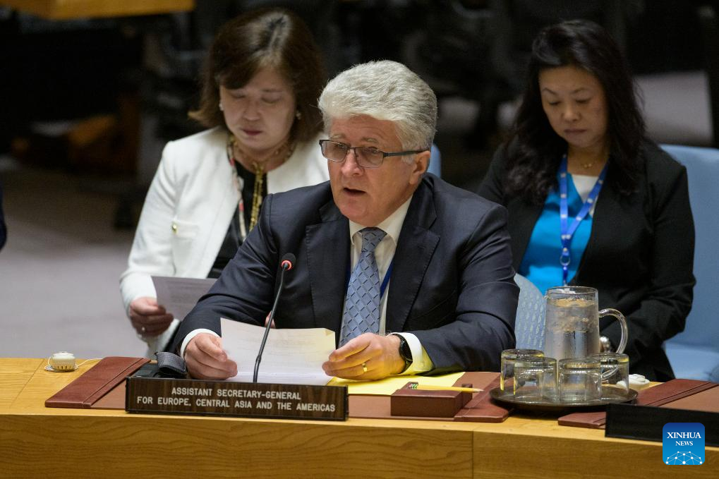 UN Assistant Secretary-General for Europe, Central Asia and the Americas Miroslav Jenca speaks at an emergency meeting of the Security Council to discuss the alleged intrusion of Estonian airspace by Russian fighter jets, at the UN headquarters in New York, Sept. 22, 2025. [Photo by Manuel Elias/UN Photo/Handout via Xinhua]