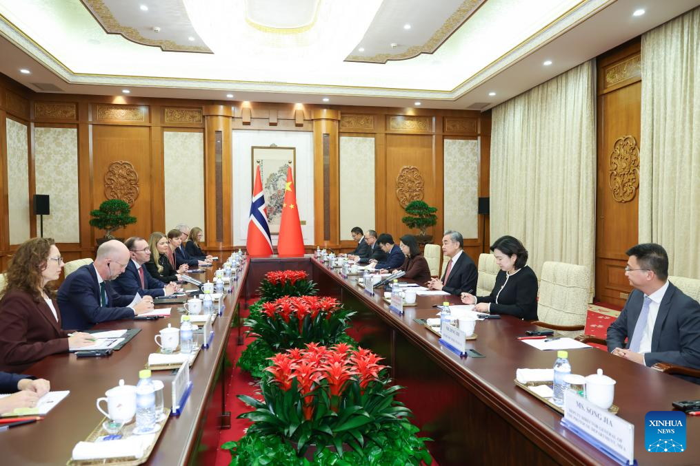Chinese Foreign Minister Wang Yi, also a member of the Political Bureau of the Communist Party of China Central Committee, holds talks with Norwegian Foreign Minister Espen Barth Eide in Beijing, capital of China, Nov. 11, 2025. [Photo by Liu Bin/Xinhua]