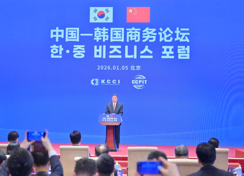 Chinese Vice Premier He Lifeng, also a member of the Political Bureau of the Communist Party of China (CPC) Central Committee, addresses a China-the Republic of Korea (ROK) business forum in Beijing, capital of China, Jan. 5, 2026. The China-ROK business forum was held here on Monday. [Photo by Li Tao/Xinhua]