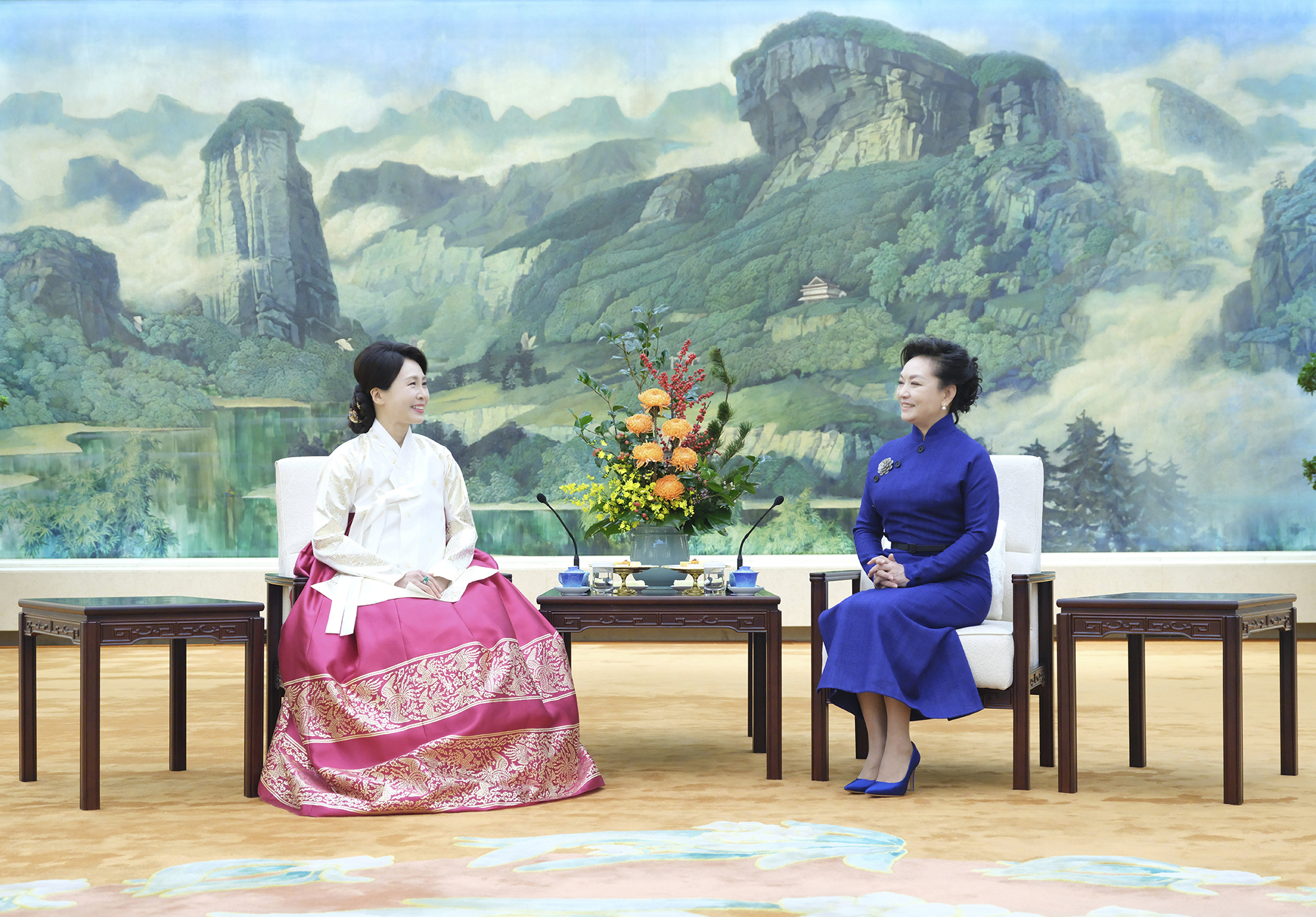 BEIJING, Jan. 5 (Xinhua) -- Peng Liyuan, wife of Chinese President Xi Jinping, chatted over tea with Kim Hea Kyung, wife of President of the Republic of Korea (ROK) Lee Jae Myung, in Beijing on Monday.