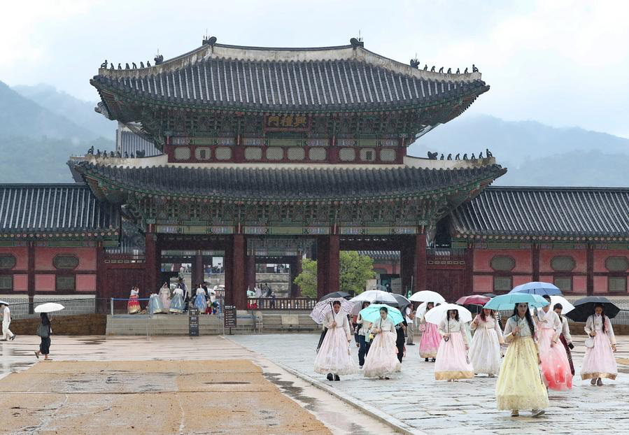 Tourists visit Gyeongbokgung Palace in Seoul, South Korea, Aug. 6, 2025. [Photo by Yao Qilin/Xinhua]