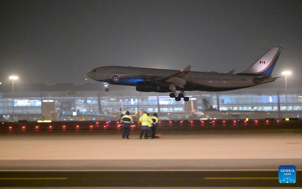 The plane carrying Canadian Prime Minister Mark Carney arrives in Beijing, capital of China, Jan. 14, 2026. Carney arrived here on Wednesday for an official visit to China through Saturday. [Photo by Cai Yang/Xinhua]