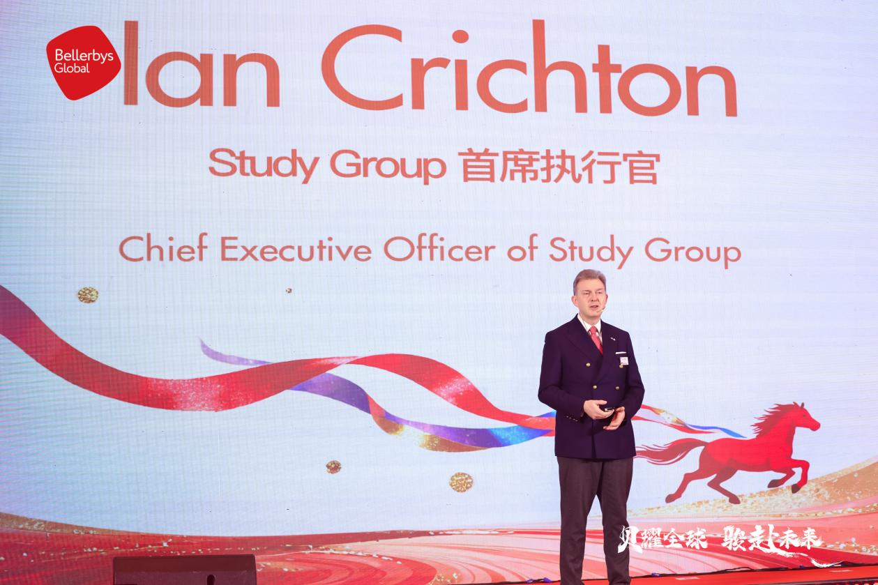 Ian Crichton, CEO of Study Group, speaks at the Bellerbys Global Education Launch Ceremony in Beijing, Jan. 14, 2026. [Photo courtesy of Study Group]
