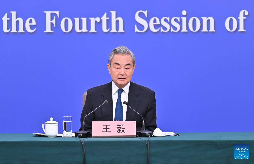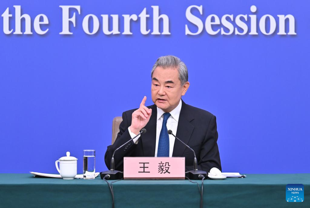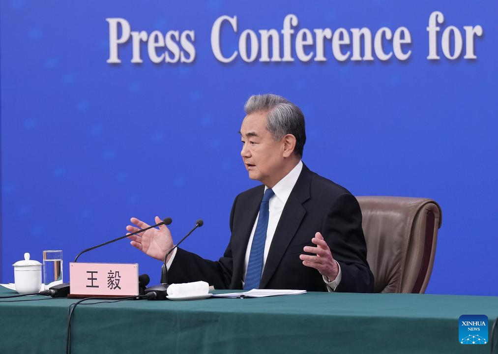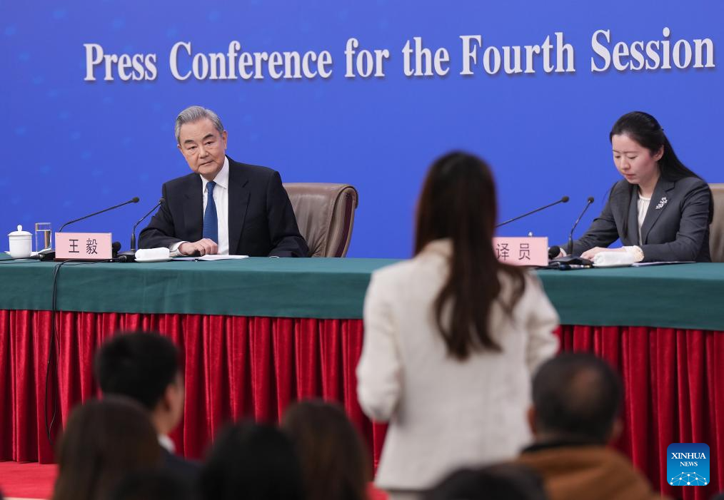 Chinese Foreign Minister Wang Yi, also a member of the Political Bureau of the Communist Party of China Central Committee, attends a press conference on China's foreign policy and external relations on the sidelines of the fourth session of the 14th National People's Congress (NPC) in Beijing, capital of China, March 8, 2026. [Photo by Li Xin/Xinhua]