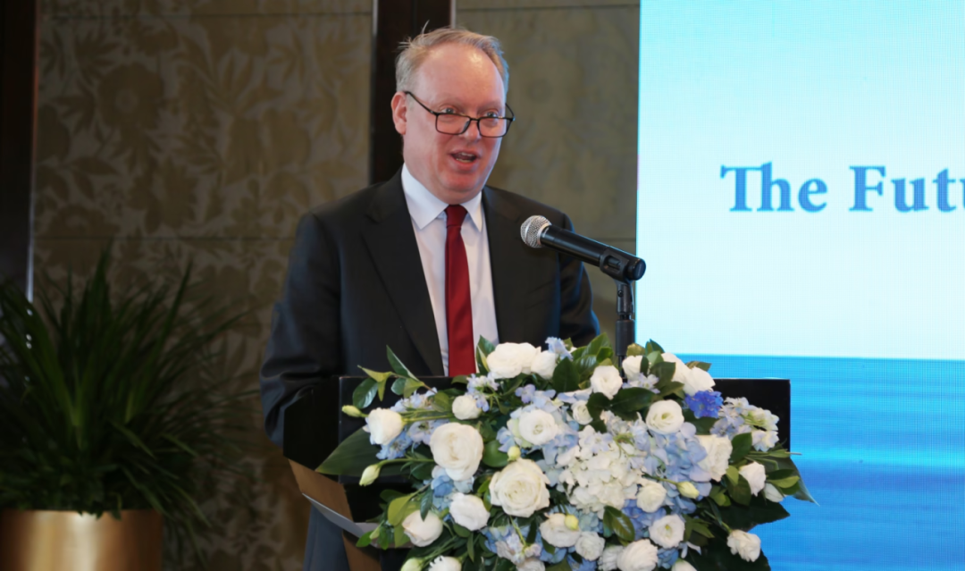 Jens Eskelund, president of the European Union Chamber of Commerce in China, speaks at a luncheon in Beijing, April 8, 2026. [Photo courtesy of the Center for China and Globalization]