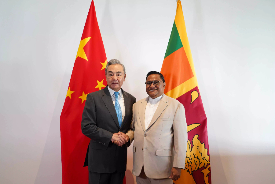 Chinese Foreign Minister Wang Yi on Monday made a stopover in Sri Lanka on his way back from a trip to Africa and held a friendly meeting with Sri Lankan Foreign Minister Vijitha Herath.